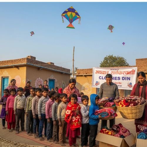 Clothes distribution on Makar Sakranti to children